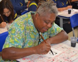 Minicurso “QUE ÁFRICA LEVAR PARA A SALA DE AULA?”, ofertado no espaço do Centro Pedagógico pela Profa. Ms. Rosa Margarida de Carvalho Rocha (ao centro).