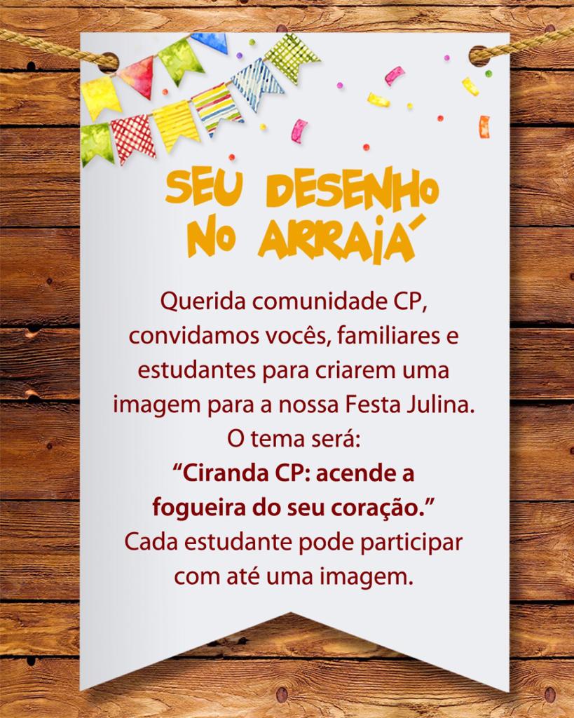 Convidamos você, estudante do CP & família para criar uma imagem para nossa festa junina, que tem como tema Ciranda CP: “acende a fogueira do seu coração”.