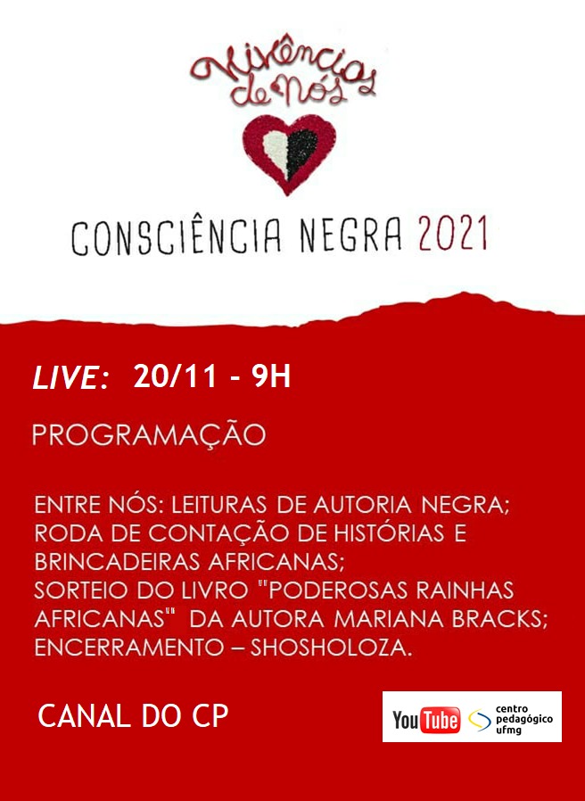Convidamos a todos para a Live da Consciência Negra do Centro Pedagógico da UFMG! Compartilhemos juntos as Vivências de Nós!