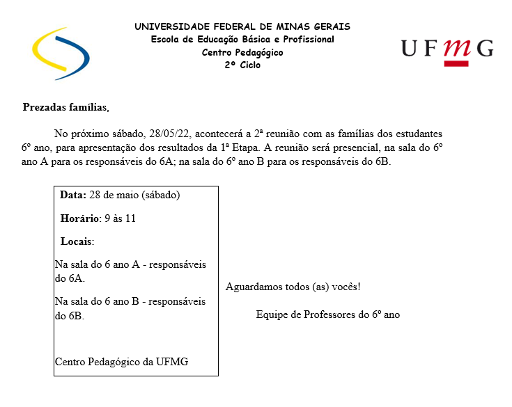 Reuniões do 2º Ciclo – 4º, 5º e 6º ano – Apresentação de resultados da 1ª etapa