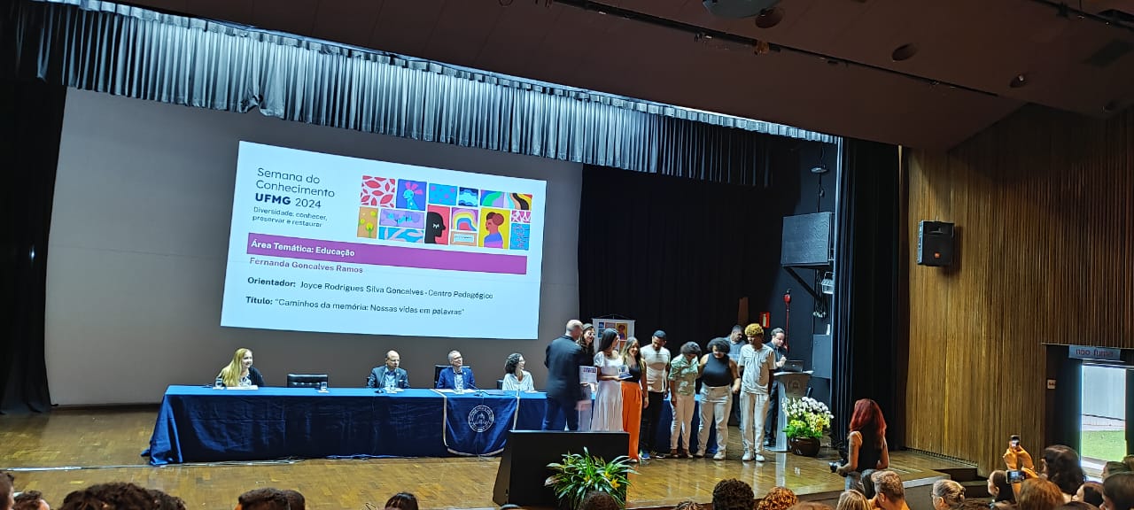 No dia 25 de outubro, o grupo de monitores e monitoras do primeiro Ciclo de Formação Humana, sob a coordenação dos/as docentes Gislaine de Fátima Ferreira Leite, Cecília Vieira do Nascimento e Bruno Silva Nigri, foi reconhecido como um dos destaques da 28ª Semana do Conhecimento da Universidade Federal de Minas Gerais (UFMG) 2024, com a apresentação do trabalho intitulado “Afetações: (Re)encontrando o PID Educação Especial, entre narrativas, trajetórias e travessias”. O Programa Imersão Docente (PID), concebido e implementado pelo Centro Pedagógico da UFMG desde 2011, propõe-se a realizar uma formação integral de estudantes oriundos de diversas licenciaturas e áreas afins à educação, promovendo um ambiente onde experiências significativas favorecem a inclusão e a diversidade no contexto escolar. A recente reestruturação do programa viabilizou a unificação de subprojetos, permitindo às equipes envolvidas uma dedicação mais intensificada ao acompanhamento de turmas e estudantes públicos-alvo da educação especial, bem como ao exercício supervisionado da docência, à realização de estudos, planejamentos e produção de materiais didático-pedagógicos, e aos encontros de formação e orientação. Essa abordagem integrativa e colaborativa enriquece o processo formativo, tendo como pilares fundamentais o trabalho coletivo e a afetividade nas práticas pedagógicas. O PID se estabeleceu como um espaço de escuta ativa e (re)construção de saberes, desafiando os/as futuros/as educadores e educadoras a uma reflexão crítica sobre suas práticas e ações no ambiente escolar. Dessa forma, a experiência proporcionada aos/às graduandos/as promove uma compreensão mais aprofundada das complexidades das relações humanas inseridas no contexto educacional, preparando-os/as para enfrentar os desafios contemporâneos que permeiam a realidade educacional, ao mesmo tempo em que fomenta um compromisso ético e social em relação à educação inclusiva.